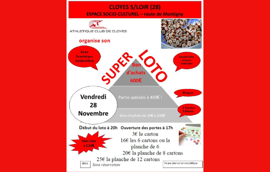 - - du chèque de cotisation de 86€ libellé à l'ordre de l'AC CLOYES (un réglement par virement est possible, nous contacter).