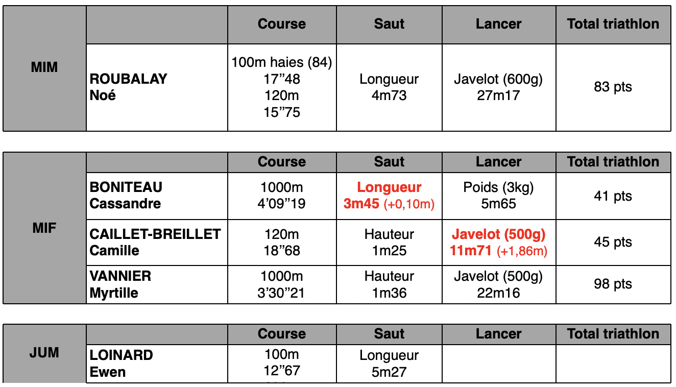 Rdv le 8 mai pour l'équip'athlé des BE/MI et le dernier week-end des vacances pour les CA/+ avec un dernier meeting avant les interclubs !